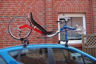 Mit Elite San Remo Fahrradträger auf dem Dach der A-Klasse.