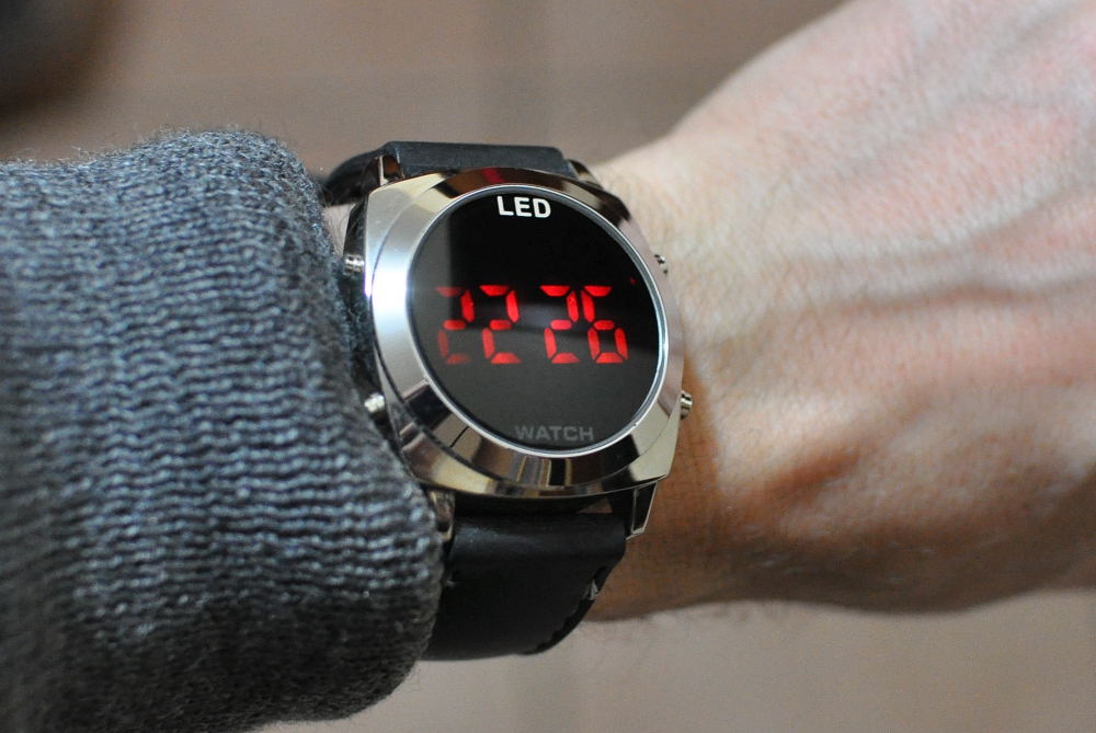 Heute (28.01.10) habe ich meine LED-Uhr bekommen. Marke ist "St. Leonhard", aber ich glaube, es gibt sie nur bei Pearl (bin mir nicht sicher). Das Teil ist schwer. Die Speedy habe ich mit Lederarmband mit 70 gr. gewogen, die LED-Uhr mit 89 gr.. Ich habe auch noch eine alte Poljot (Handaufzugs-Chronograph), trage ich aber nur selten, weil ich die Speedy einfach lieber mag. Mal sehen, wie es mit der LED-Uhr wird. Erster Eindruck: Wow, finde sie super! Irgendwie cool :D. Das "Zifferblatt" ist voellig schwarz und nur bei Druck gibt es leuchtende Zahlen (3 Sek. lang). Die Uhr hat 4 Druecker, wobei das aber sicher nur optische Gruende hat. Die beiden linken Druecker lassen alle Elemente kurz leuchten, danach die Uhrzeit. Im Grunde überfluessig, naja, evtl. als Check. Druck rechts oben die Uhrzeit, nochmal drücken das Datum und nochmal kommen die Sekunden, wobei man zuegig druecken muss, damit sie zwischendurch nicht wieder ausgeht. Rechts unten druecken dient dem Einstellen der Uhr. Die Gehaeusequalität ist natürlich nicht auf dem Level der Speedy, aber auch nicht viel schlechter als von der Poljot. Nur von unten kann man etwas Unregelmaessigkeiten im Metall erkennen, oben ist sie ok.. Das Armband ist komisch gummihaft, soll Silikon sein. Erstmal trage ich sie so. Ist ziemlich breit (24 mm). Die Uhr ist auch recht hoch. Das Design gefaellt mir eigentlich erstaunlich gut! Es ist eine runde schwarze Fläche, gefaellt mir besser als die eckigen Ausschnitte anderer Digitaluhren.